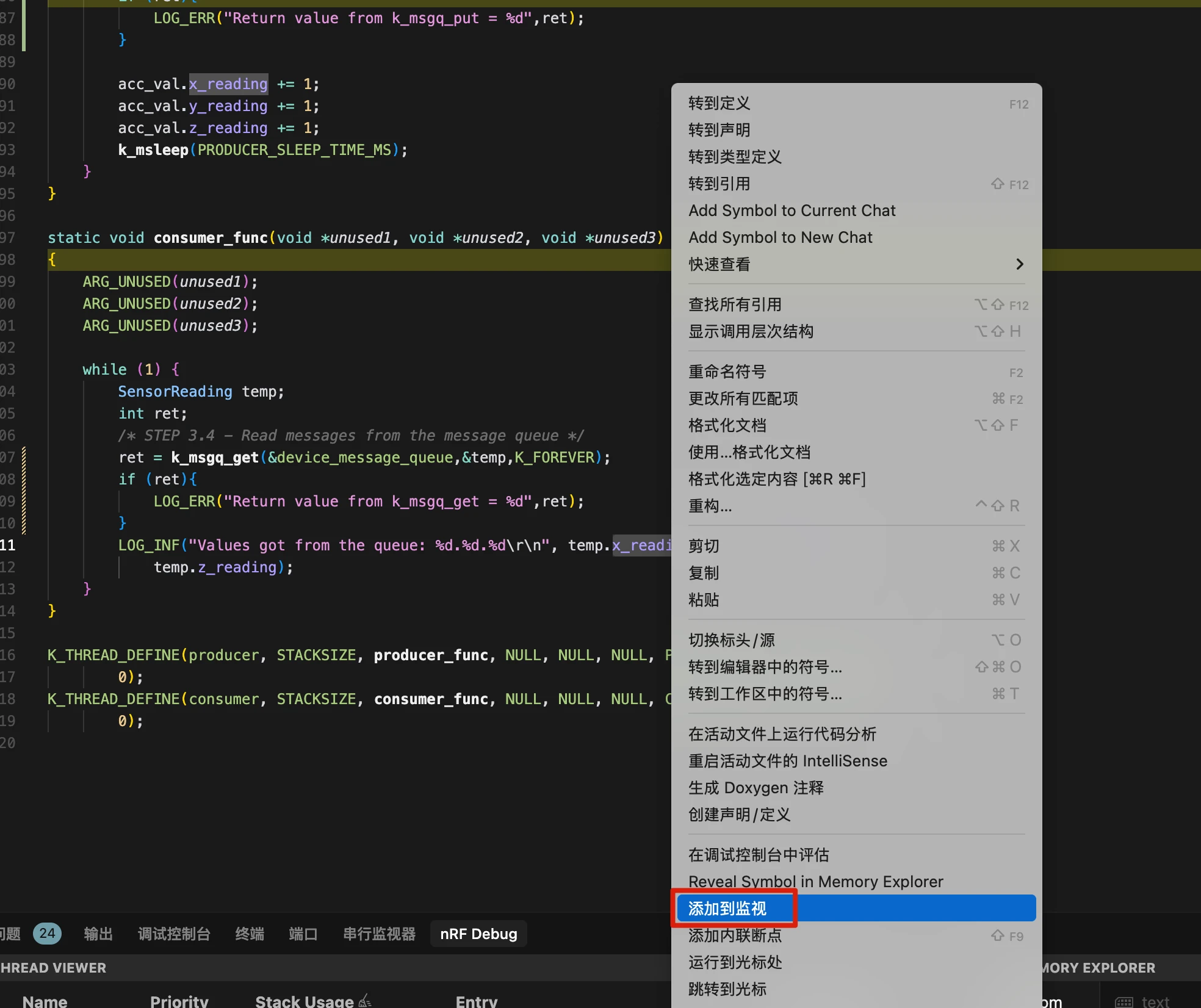 创建线程通常有两种方式:使用宏 K_THREAD_DEFINE() 或使用函数 k_thread_create()。