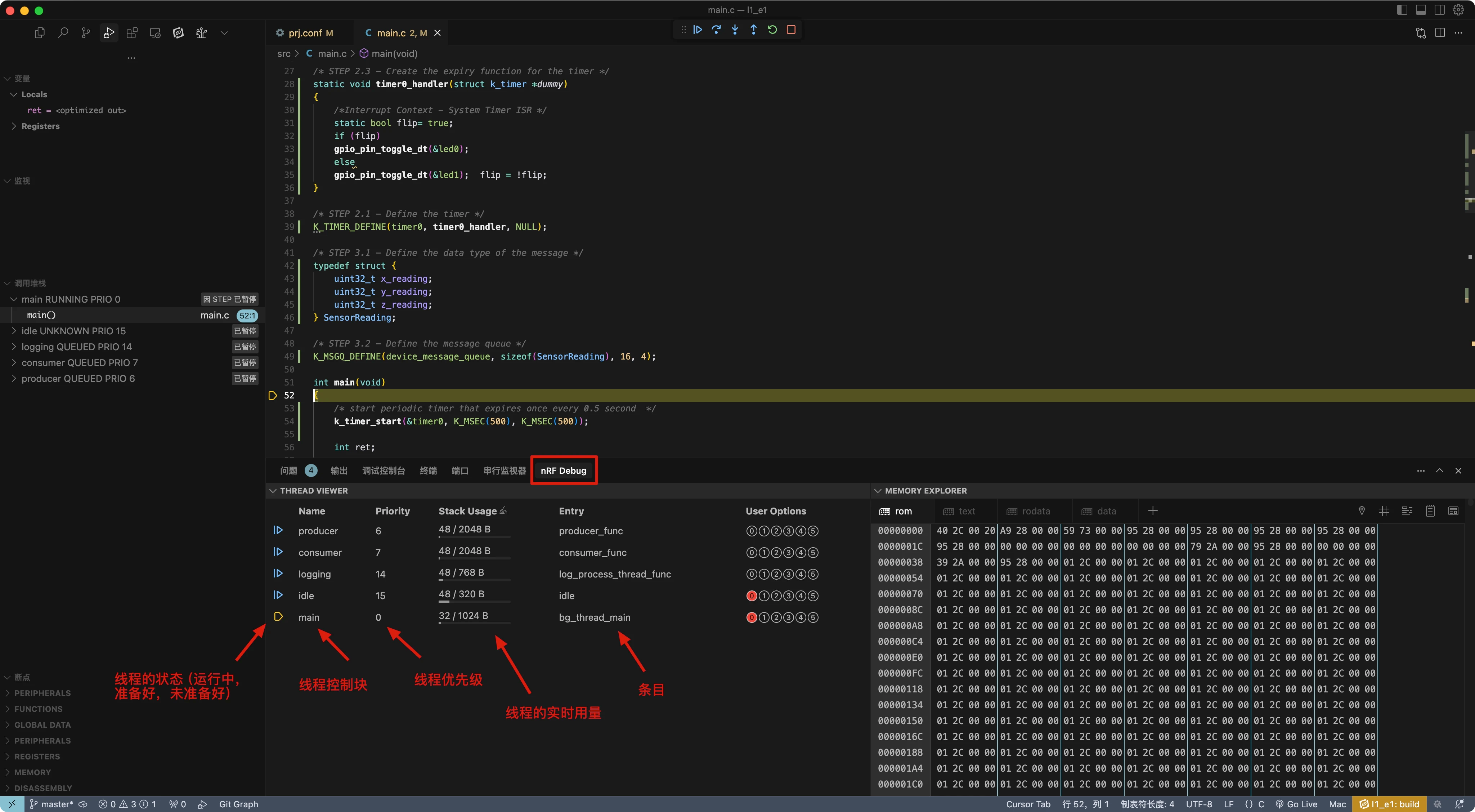 在本课程中,我们将深入探讨 nRF Connect SDK/Zephyr 中的线程管理和数据传递。我们有两种执行上下文:线程上下文和中断上下文。每种上下文都有其特定的使用场景和时序影响。
