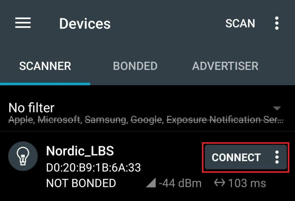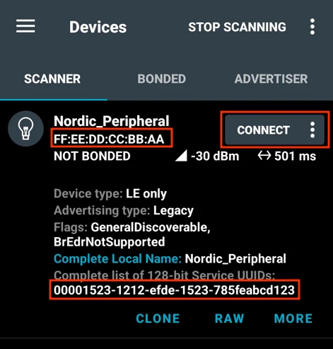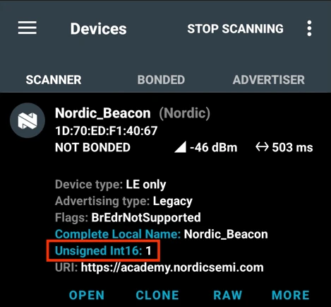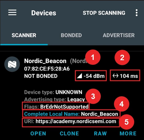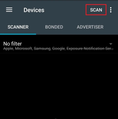 屏幕将实时显示无线范围内所有 BLE 数据包。