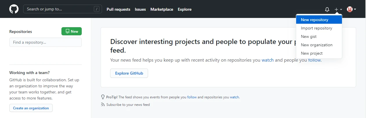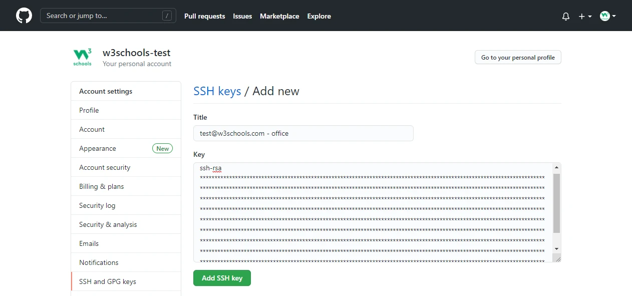 clip < /Users/user/.ssh/id_rsa.pub转到 GitHub,导航到左上角,单击您的配置文件,然后选择: 设置,然后选择“SSH and GPG keys”,点击“New SSH key”按钮。