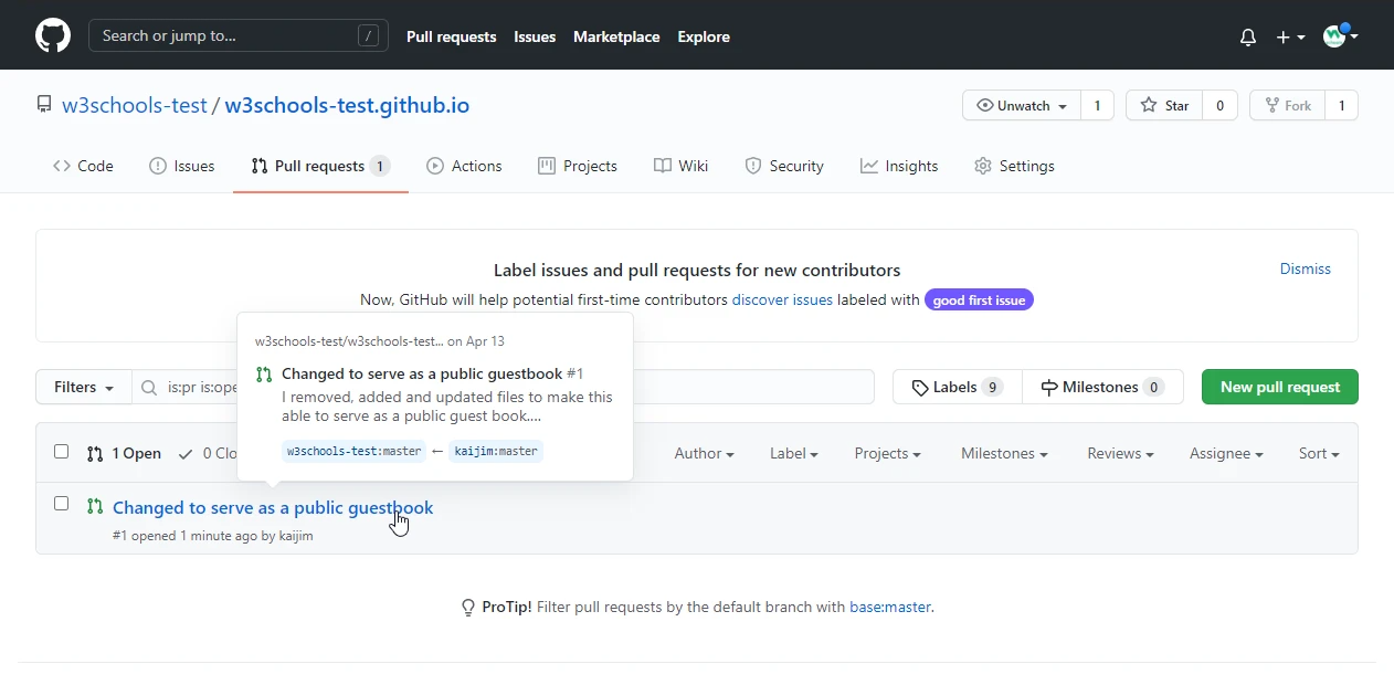 现在,任何具有访问权限的成员在看到原始存储库时都可以看到“拉请求”:
