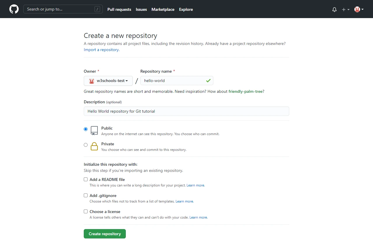 新建仓库: