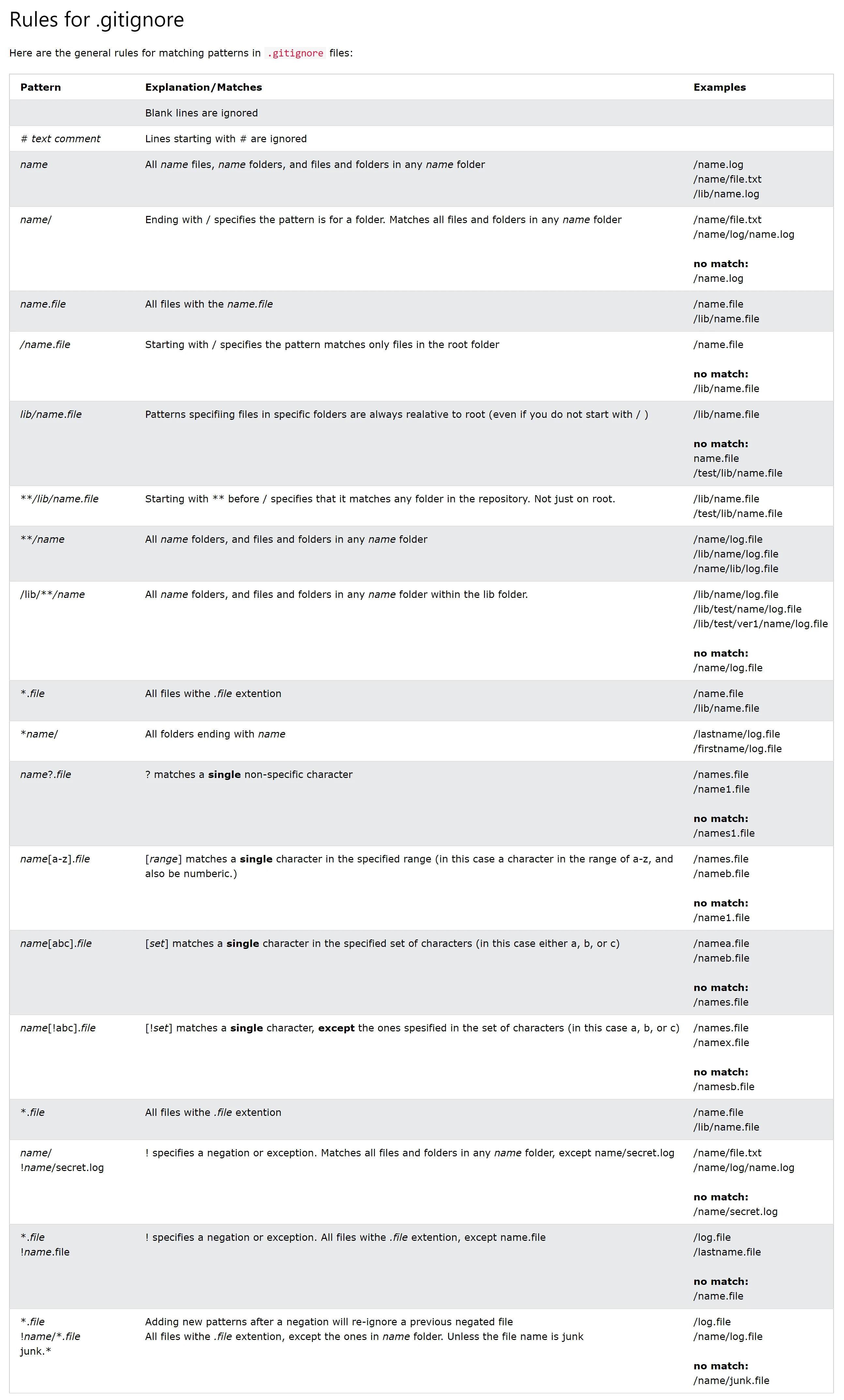 在子目录中也可以有额外的.gitignore文件。这些文件只适用于该目录下的文件或文件夹。